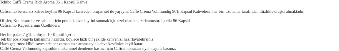 Tchibo Cafissimo Caffe Crema Rich Aroma 96'lı Kapsül Kahve